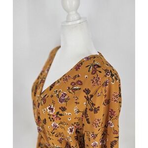 As U Wish Golden Yellow Floral Boho Belted Mini Dress Bell Sleeve Womens Size XL