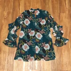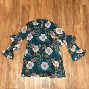 As U Wish Juniors Green Floral Keyhole Ruffle Sleeve Dress Size Small