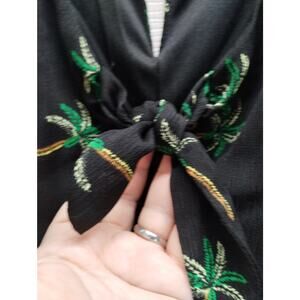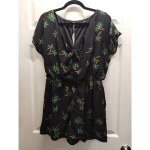 As U Wish Juniors Size XL Romper Black Palm Tree Tie Knot V-Neck Keyhole Back One-Piece Outfit