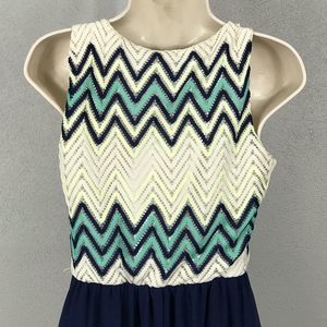 As U Wish Maxi Dress ~ Sz M ~ Blue ~ Long ~ Lined ~ Sleeveless ~ Chevron Top