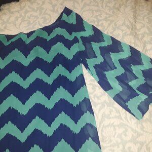 As U Wish Med Ladies 1 Shoulder Turquoise & Purple Chevron Print Lined Chiffon