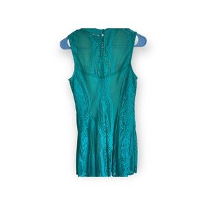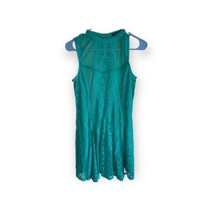 Adorable blueish-green mini cocktail/party dress. I love the color, fit, and flirty nature of this dress.
