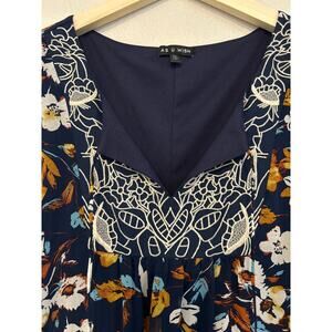 As U Wish Peasant Smock Babydoll Floral Embroidered Dress XL
