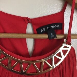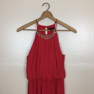 [As U Wish] Red Sleeveless Maxi High Halter Neck Dress