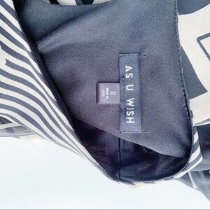 As U Wish • Short Sleeve Chevron Print Shift Dress, Black/Beige, Size Small