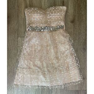 Stretchy, mini dress. Tiered and sparkly. Size medium. New with tags. Light taupe color