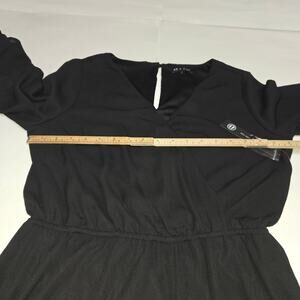 As U Wish Womens Medium Romper Bell Sleeves Suplice Wrap Black Dark Academia. In good, pre-owned condition with no noted rips, tears or stains. Measurements in description and in pictures with ruler. Please see pictures as they are considered part of the description.