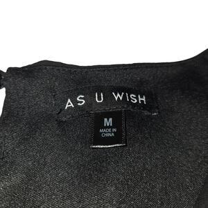 As U Wish Womens Medium Romper Bell Sleeves Suplice Wrap Black Dark Academia. In good, pre-owned condition with no noted rips, tears or stains. Measurements in description and in pictures with ruler. Please see pictures as they are considered part of the description.