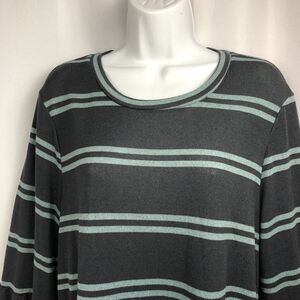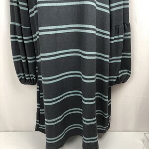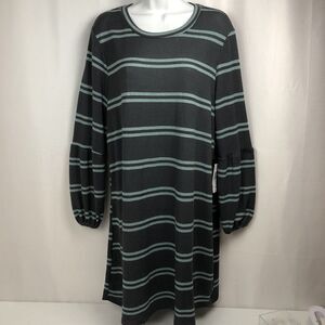 As U Wish Womens Size 0X Shift Dress Lantern Sleeve Gray Sage Striped New with tags