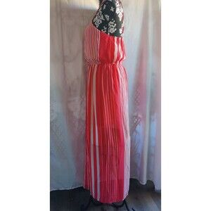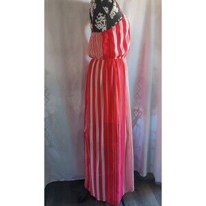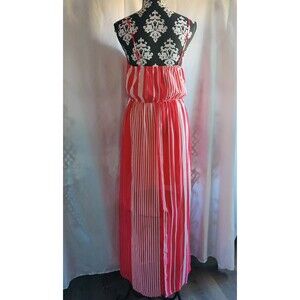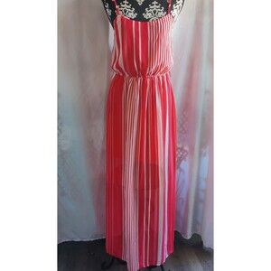 As U Wish Women's Stripes Maxi Dress Empire Waist Sleeveless Pink White Size Small