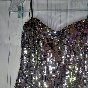 As U Wish black and silver sequin strapless bodycon mini dress