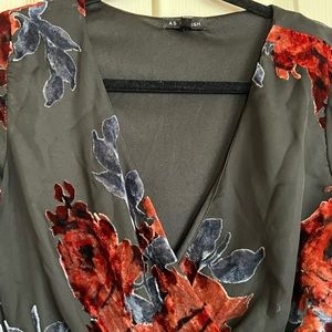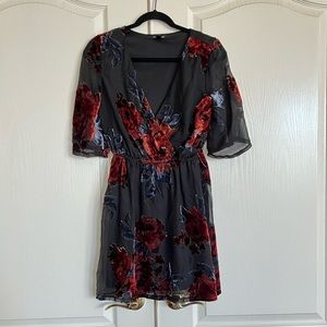 As U Wish black burnout velvet floral wrap flutter sleeve mini dress size Small