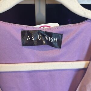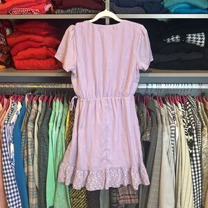 As U Wish lavender elastic waistband eyelet lined faux wrap dress size S NWT