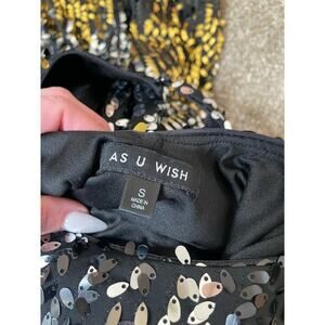 As U Wish women sequin mini dress bodycon black/gold/silver stretch SZ SM Sexy
