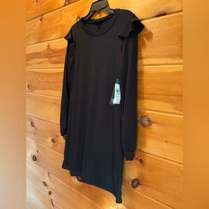 As You Wish Ruffle Shoulder Black Dress NWT Womens Size M