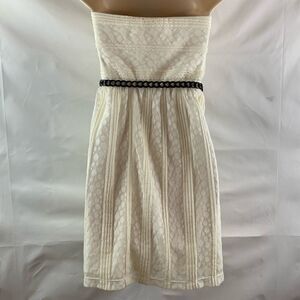 As You Wish Strapless Dot Lace Dress. The dress is new with tags. It was missing the belt, so I added a leather BDG belt from Urban Outfitters.