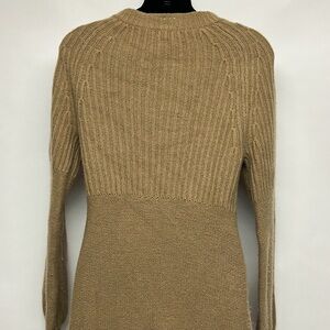 100% wall button, long, brown cardigan, long sleeve some peeling on the sweater there are two holes underneath the left arm as is see photos