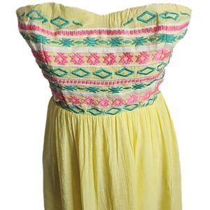 As u Wish yellow boho strapless maxi dress with embroidery, size M