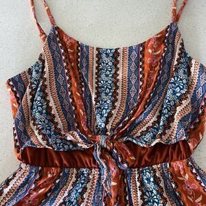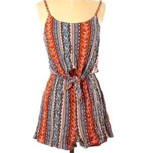 As you Wish Romper Spaghetti Strap Orange Boho S Aztec Western Shorts Jumpsuit