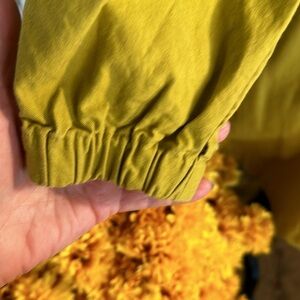 Asago 100% Cotton Chartreuse Striped Arms Cinched Waist Popover Windbreaker S/M-L