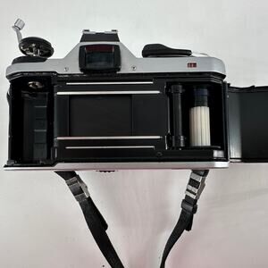 Vintage Asahi Pentax ME 35mm film SLR camera made in Japan. Includes SMC Pentax-M 50mm f/1.7 lens with Pentax front cap and original strap. Classic compact design with manual focus and aperture priority exposure mode. Serial number 1515277 stamped on the bottom. Camera shows cosmetic wear consistent with age but film chamber, shutter and dials appear intact. Back of the camera is marked “Made in Japan.” Please review photos closely for cosmetic details. Offered as untested. I have not put film through it, so full working condition is unknown. Cosmetically shows scratches, scuffs, and normal signs of use for its age. Strap is attached and lens glass appears clear with normal dust for age. Please review pictures for details.