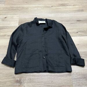 Asceno Black 100% Organic Linen Collared Button Boxy Fit Shirt - Size Large