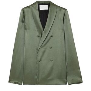 Dark Green luxurious silk double breasted blazer. Lined, shawl collar, re;axed, oversized fit.