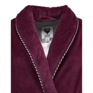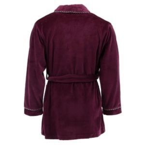 This timeless classically styled smoking jacket will wrap you with luxurious comfort. The silky soft satin lining is smooth against the skin. The plush velour exterior features contrast rope piping trim for a distinguished look and 2 convenient patch pockets. 32-inch length. Luxuriously soft velour. Contrast piping trim. Matching sash. Silky smooth satin lining. 2 pockets for convenience. Size S/M.