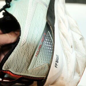Light staining on the toes (barely noticeable). Uppers intact with no tears. Soles show normal wear, especially on the outer heels. Insoles included and in good condition.