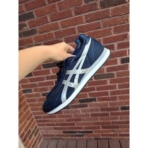 The Ascis Women's Tiger Runner II Navy and Silver sneakers in size 10.5 are a stylish and unique athletic shoe option for women. Featuring a silver color with a metal cleat type, these sneakers are designed for performance and fashion. The Ascis brand is known for its quality and durability, making these sneakers a reliable choice for active individuals looking for a standout shoe option.