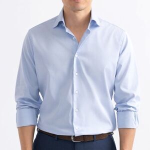 Ascot Chang Long Sleeve Button Front Dress Shirt In Light Blue Size XL