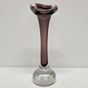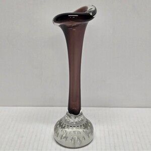 Aseda Glasbruk Bullicante Controlled Bubbles Swedish Amethyst Art Glass Bone Vase Jack In The Pulpit VTG 60s, MCM.