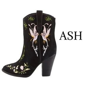 Ash Black Floral Embroidered Heeled Boots