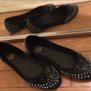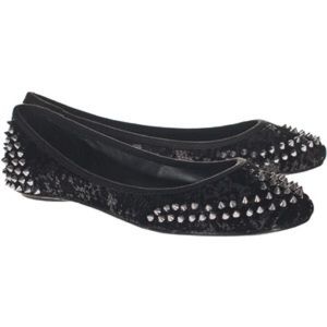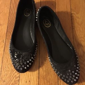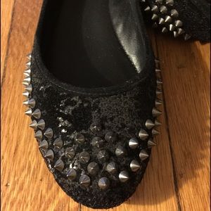 Sparkling elegance meets glam rock studs...you can't go wrong with these sequined ballet flats. Leather sole. Stud embellishments. Sequins.