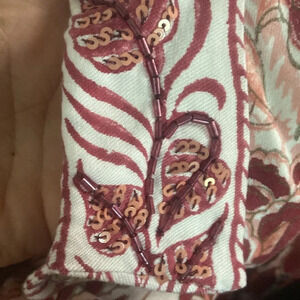 Chintz features a voluminous midi silhouette with long bishop sleeves, fitted cuffs with contrasting fabric & scallop trim, a collared neckline with sequin detailing, and side pockets. Crafted in India.