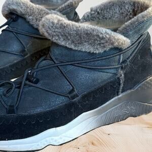 Ash Kyoto Black Boots Suede Leather Sherpa Lined Boots Sz 39Euro 8US Ombre Soles