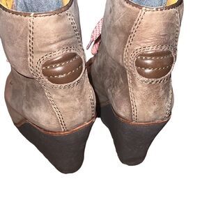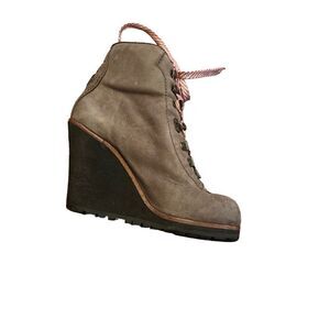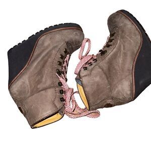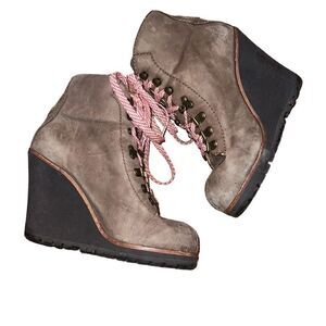 Ash Leather Tan Wedge Combat Boots Size 8