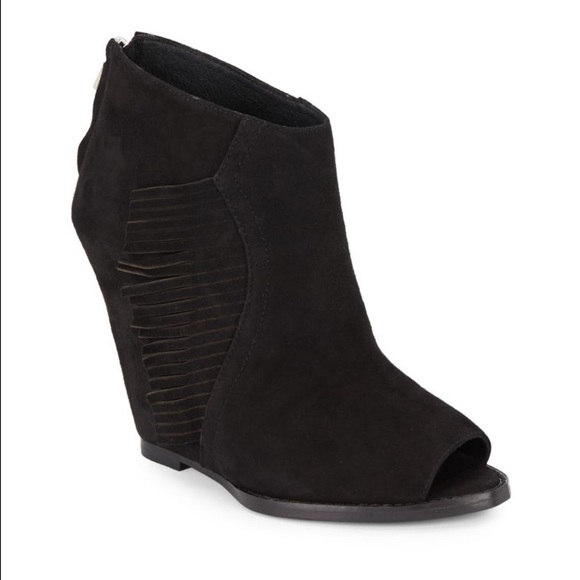 Ash Lynx Bis Fringed Suede Peep Toe Wedge Booties