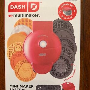 Create fun and festive waffles with the Ash Multimaker Mini Maker System. Featuring a vibrant red design, this appliance is perfect for adding a touch of joy to your kitchen. Enjoy making waffles with removable plates for easy cleaning.