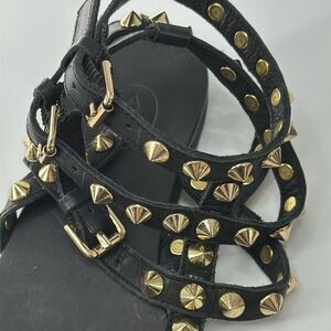 Ash Oasis Black Leather Studded Sandals. Size 36. In like new pre-owned condition. No visible flaws.