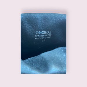 Ash Original wedge boot with adjustable shaft. Black . Size 36 It can be worn cuffed as a bootie or uncuffed as a midcalf slouchy boot. 4" tapered wedge heel, black leather, Very Good Condition, Moderate discoloration throughout; moderate scuffs throughout; wear at soles.