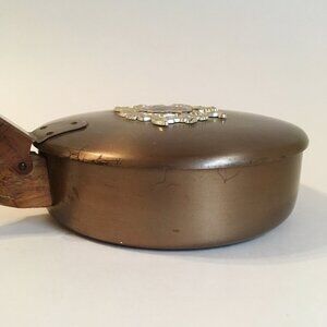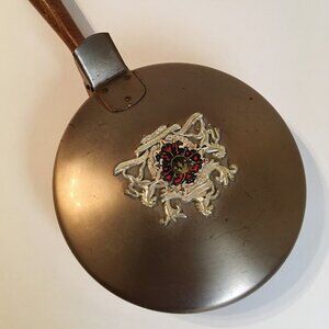 Approx. 5 1/2" across, 1 1/2" tall, 5 1/4" handle.
