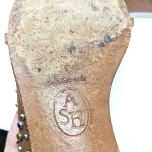 Ash Womens 8 Sandals Leather Studded Silver Gold Metallic Stars Cognac Zip 39 Mercure