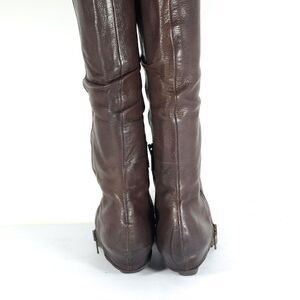 Ash Women's Tentation US7-7,5 Brown Leather Tall Side Zips Cone Heel Riding Boot