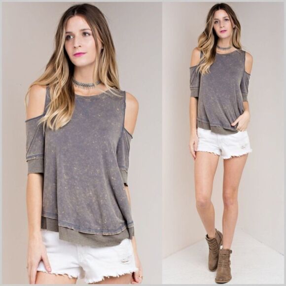 Ash Cold Shoulder Washed Top