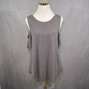 Ash colored, mineral washed top with open shoulders.