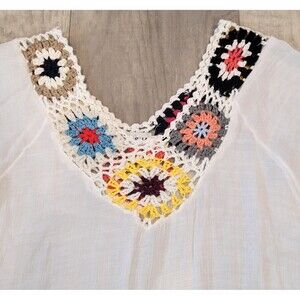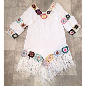 Asha Womens OS Boho Swim Cover Up Tunic Festival Fringe Crochet Artsy Colorful