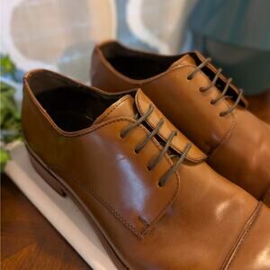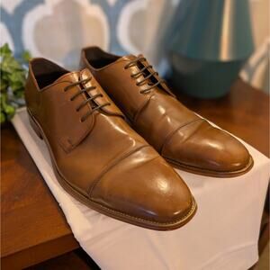 Asher Green Leather Camel Brown Lace Up Cap Toe Oxford Dress Shoes, Mens Size 14