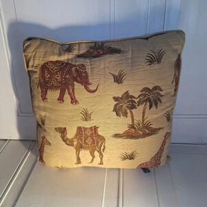 Ashford Court Middle Eastern Camel/Elephant Theme Decorative Throw Tapestry Pillow. Brown and Tan Color. Pre-owned In Excellent Condition With No Stains. Very Clean. Please See Pictures to See Actual Pillow and Condition of Pillow. Please Reach Out With Any Questions! Have a fabulous day!