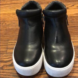 Great condition girls high top sneakers. Black with white soles. Silver and gold glitter on back. Side zipper closure. Ash brand from chasing Fireflies. Size 31.